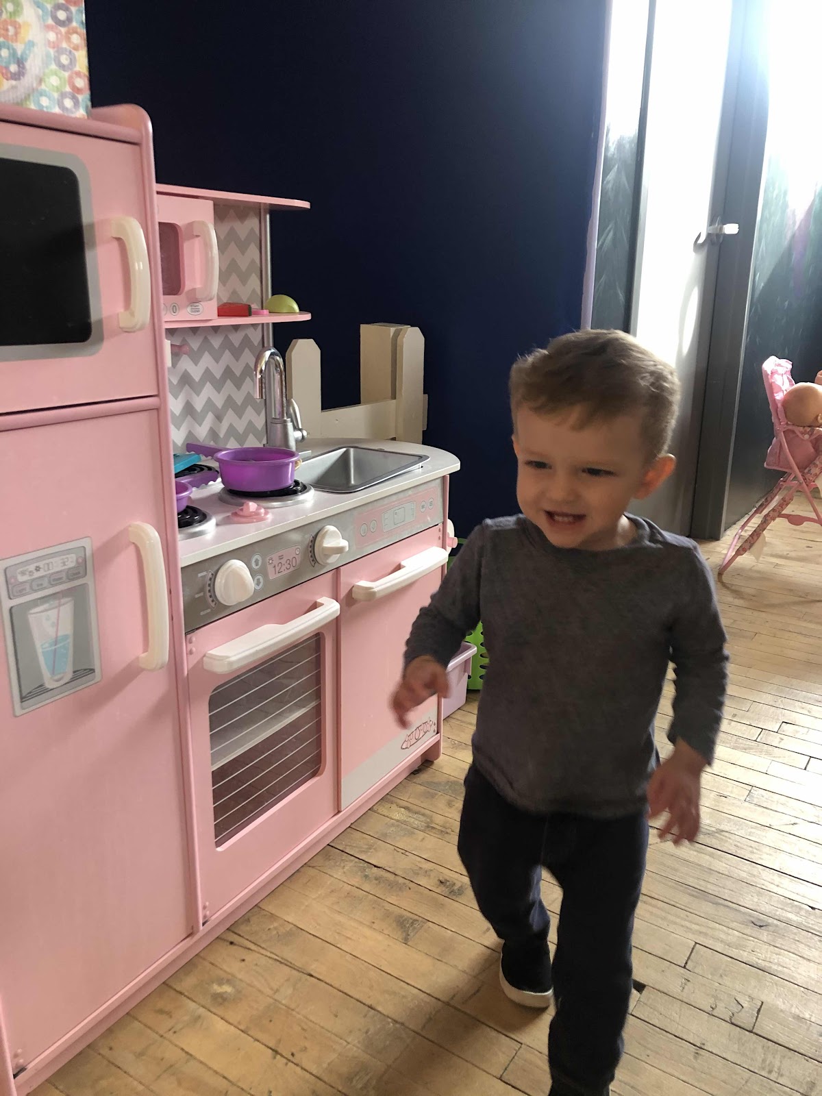 And then Frankie got a turn. The owner was very friendly and came and chatted with us and shared that she created the schoolroom while they were shutdown for covid. She paints and decorates herself using community donations.