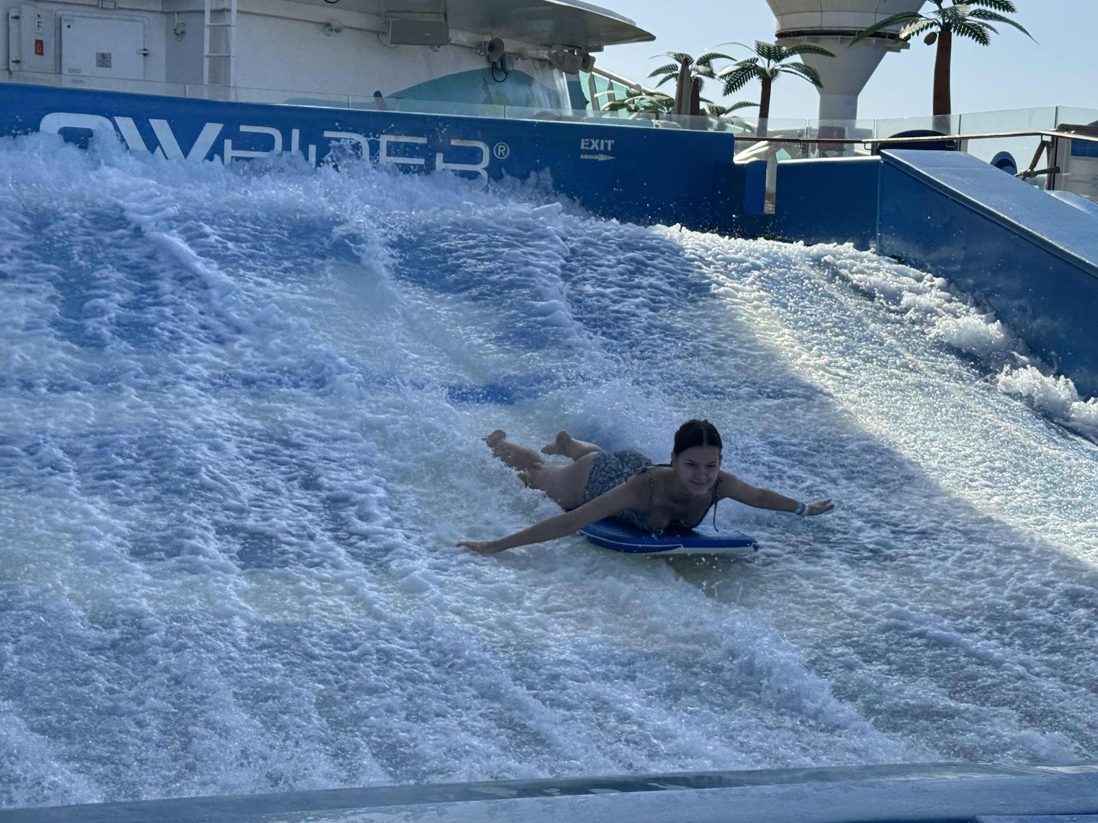 Monday morning brought our special wave rider time at 9:00. It’s so fun to try and also fun to get thrown clear off.