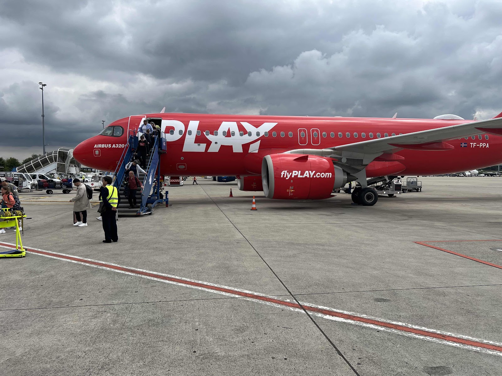 Since we were all seated separately I got off the plan first and got to wait for everyone on the shuttle. Then they crammed the whole plane into 2 busses. Super fun.