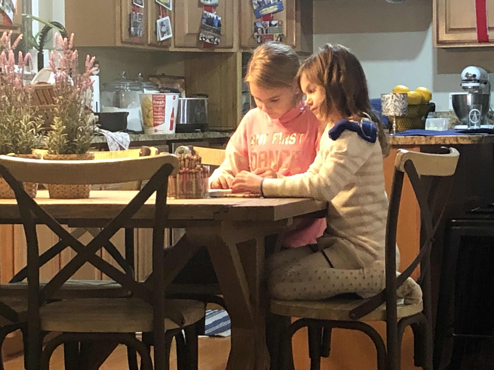 Or as we like to call it “Scripture power hour.” The girls colored our new BoM journal from Debby. 1 good week of CFM down. 👍🏼