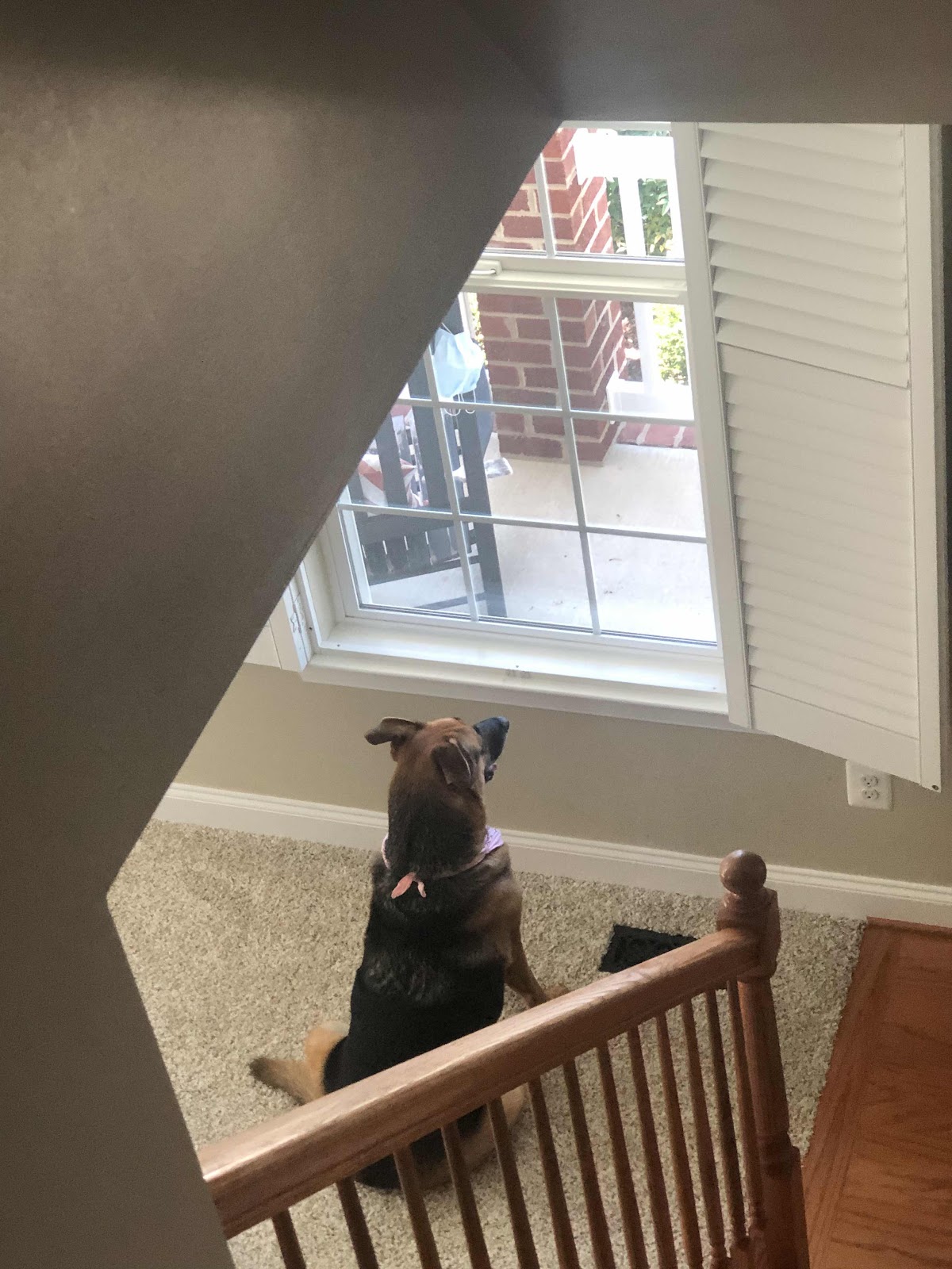 Whoops, got a few days behind. There have been a few days where Alli has had to take a call and she’s done it in her car. Whenever that happens Tenkor watches for her dutifully.