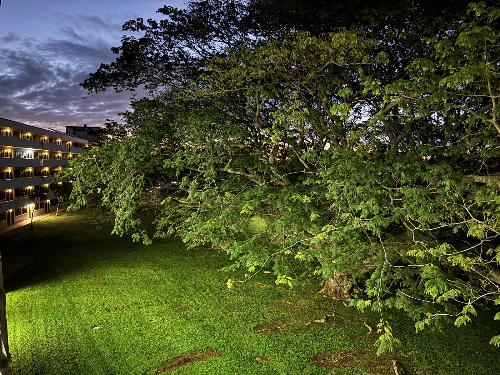 I searched through all my military accommodations for a place to stay, but the hotel I really wanted didn’t have any availability, so then I found these super cheap cabanas. It’s basically like glamping because we don’t have a private bathroom (though the communal bathrooms were very clean) and it’s pretty bare bones. Standing in one spot, our humble little row of cabanas.
