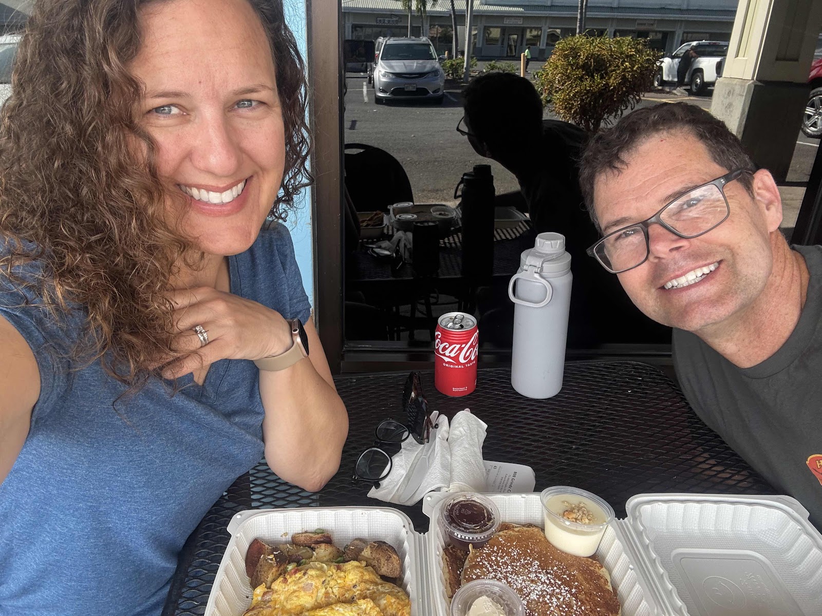 We had a loose plan for the day with our first stop being brekkie at 808 Grindz. We ordered one breakfast to share and look how big it is! We were stuffed. And the macadamia and vanilla syrup was bomb.